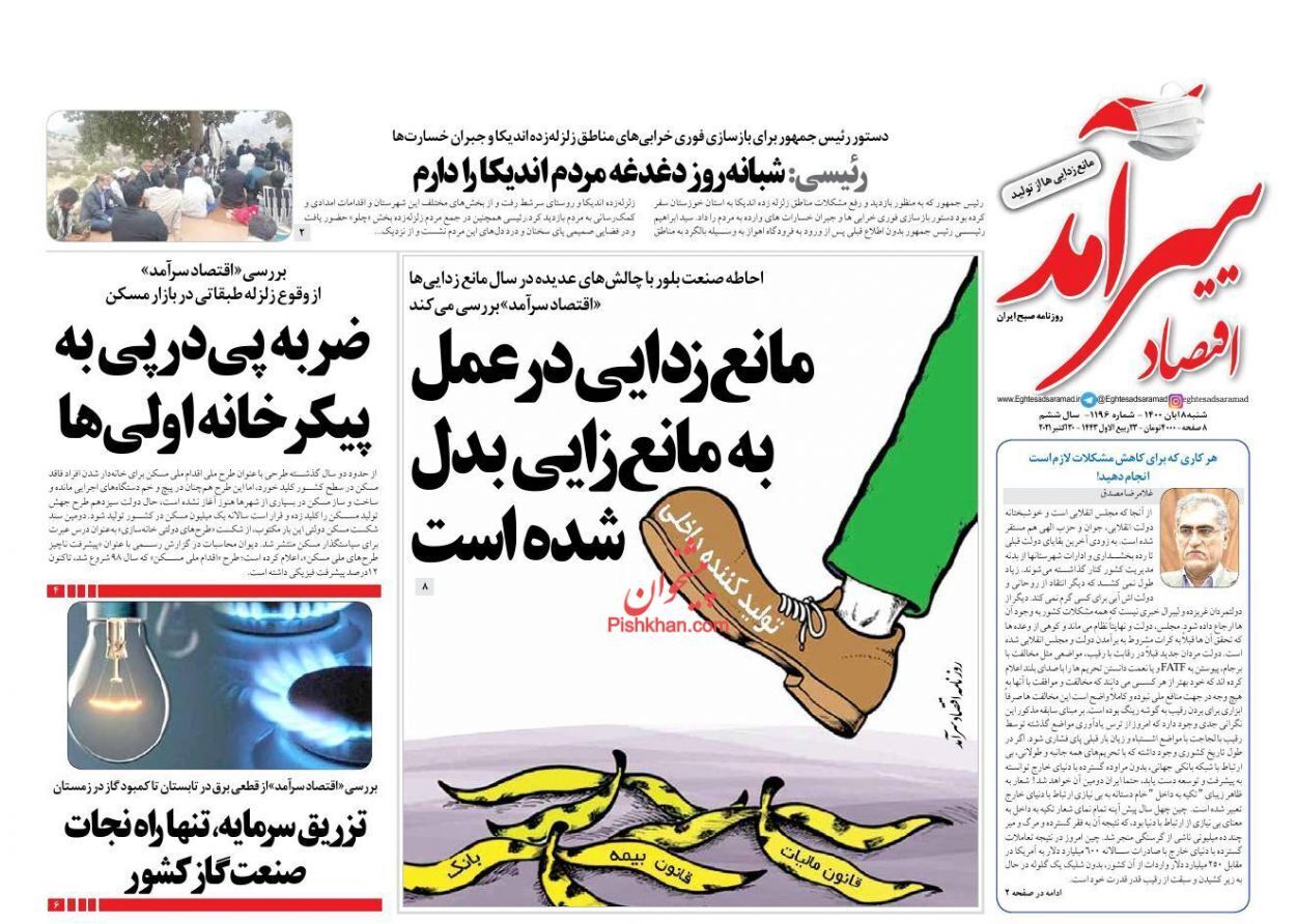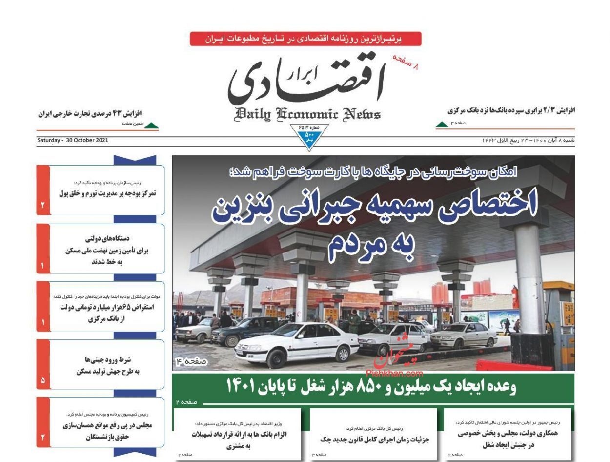 پارسینه: صفحه نخست روزنامه‌های اقتصادی و سیاسی امروز (شنبه ۸ آبان ۱۴۰۰) را در ادامه مشاهده می‌کنید.